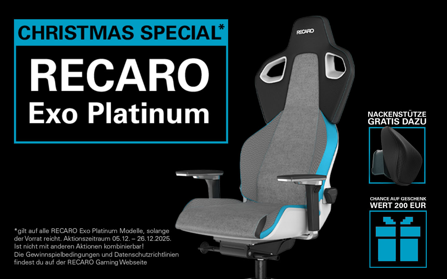 Bei jedem Kauf eines RECARO Exo Platinum gibt es die RECARO Nackenstütze gratis! Zusätzlich wird ein 200€ Geschenk verlost. Jetzt zugreifen!